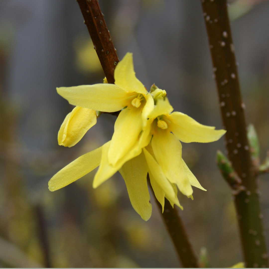 Moments ago, I was outside, and I noticed that my forsythia had begun its springtime blooming season.