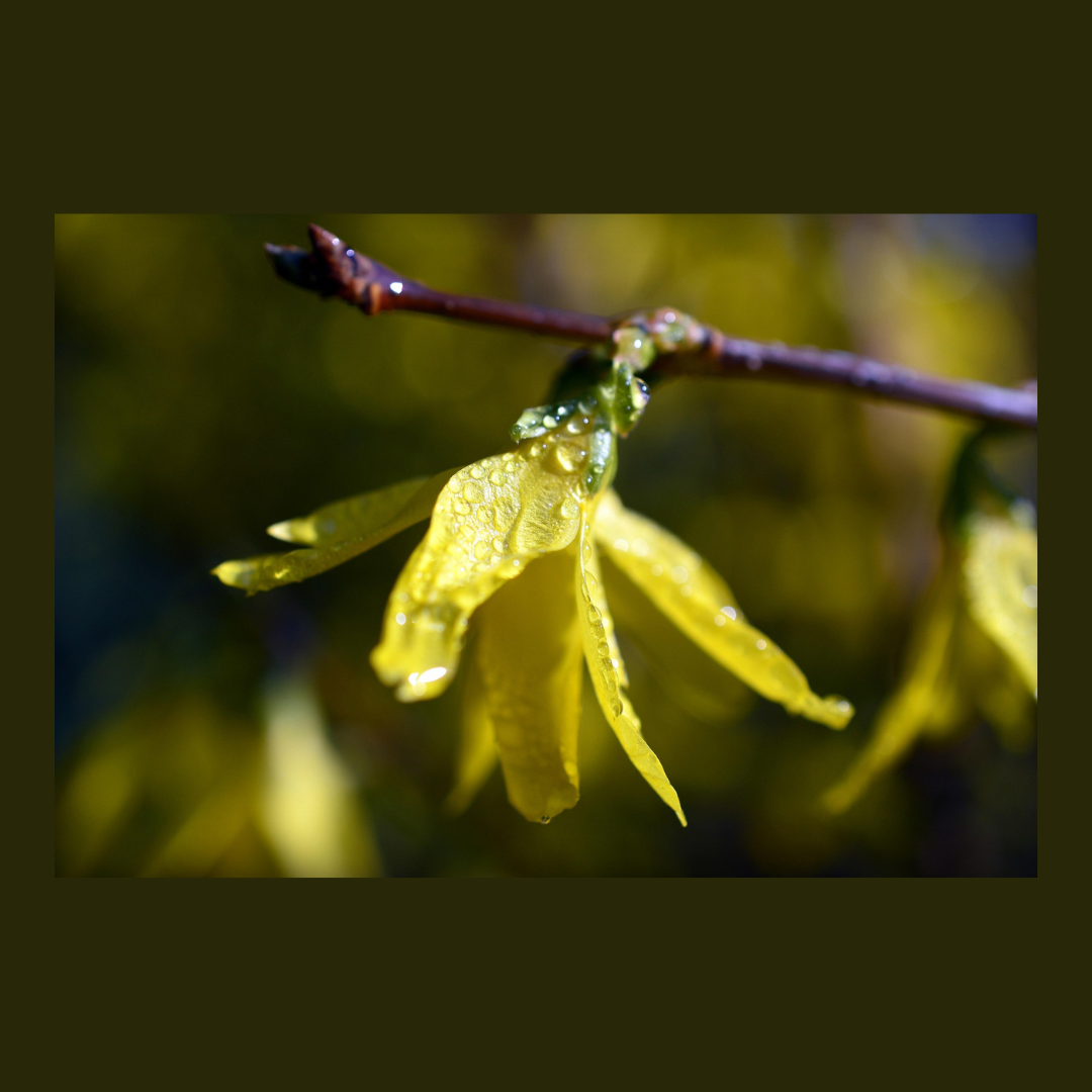 Yesterday, I was scouting around in my garden, and I spotted my first forsythia bloom of the year, Only a week ago, my garden was a tundra: