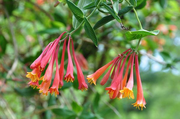“This is a twining vine that can reach 10 to 20 feet tall. It needs a support structure and thus is an excellent choice for growing up a trellis, arbor or fence. However, it can also be allowed to sprawl as a ground cover. Trumpet honeysuckle flowers in mid-